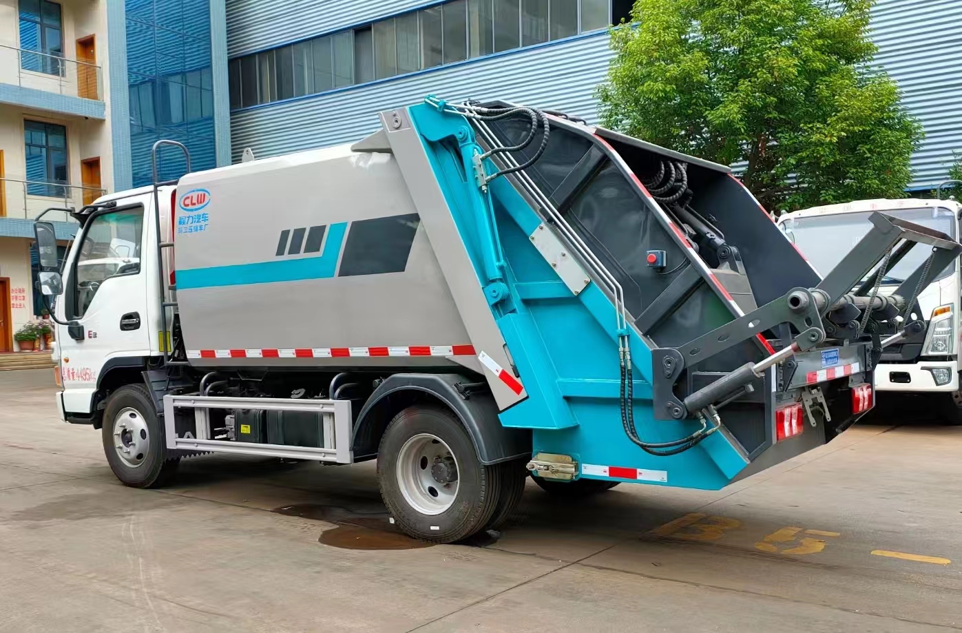 上裝配置 | 箱體5.8方容積,優(yōu)質(zhì)高強(qiáng)度板材制作,圓弧形箱體結(jié)構(gòu),外置滑板油缸,箱體厚度邊3底4,帶尾部側(cè)部雙污水箱,光電感應(yīng),博利油缸,英國DLI密封圈,威森博樂多路閥,安徽皖液油泵,CAN/PLC操作模式,帶駕駛室操作,標(biāo)配無線遙控器,標(biāo)配壓實閥,增加裝載量。 |