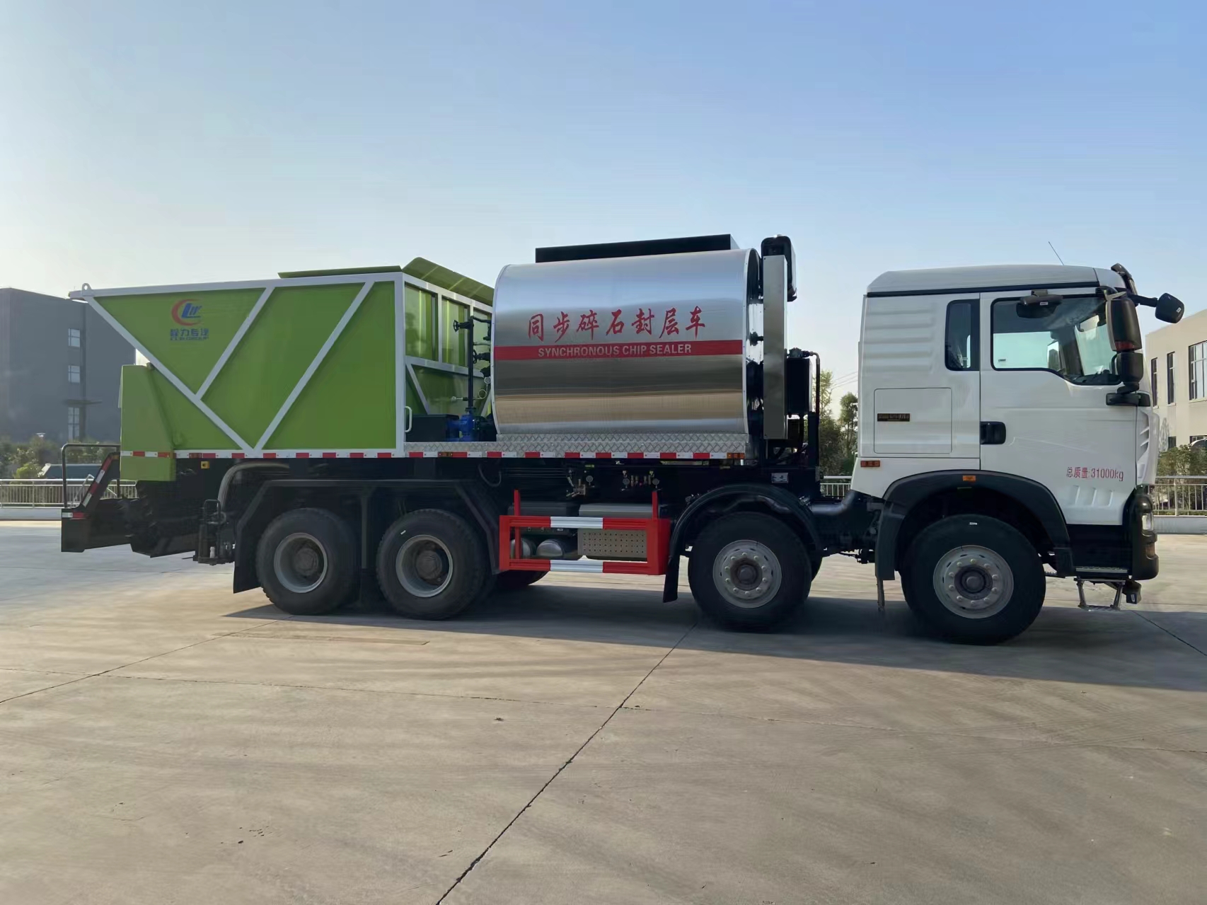 設備用途 | 同步碎石封層用于公路表面、橋面防水、下封層中的碎石封層工藝。把瀝青結合料的噴灑和骨料的撒布同步進行,使瀝青結合料和骨料之間有最充分的表面接觸以達到它們之間最大限度的粘結性的專用設備。 CLW5318TFCZ6型同步碎石是由我公司自行研制開發設計,具有自主知識產權的同步碎石封層車。達到了機、電、液合一化操作,設備操作工序得到簡化,操作簡單,整機技術性已達到世界先進水平。 | ||
