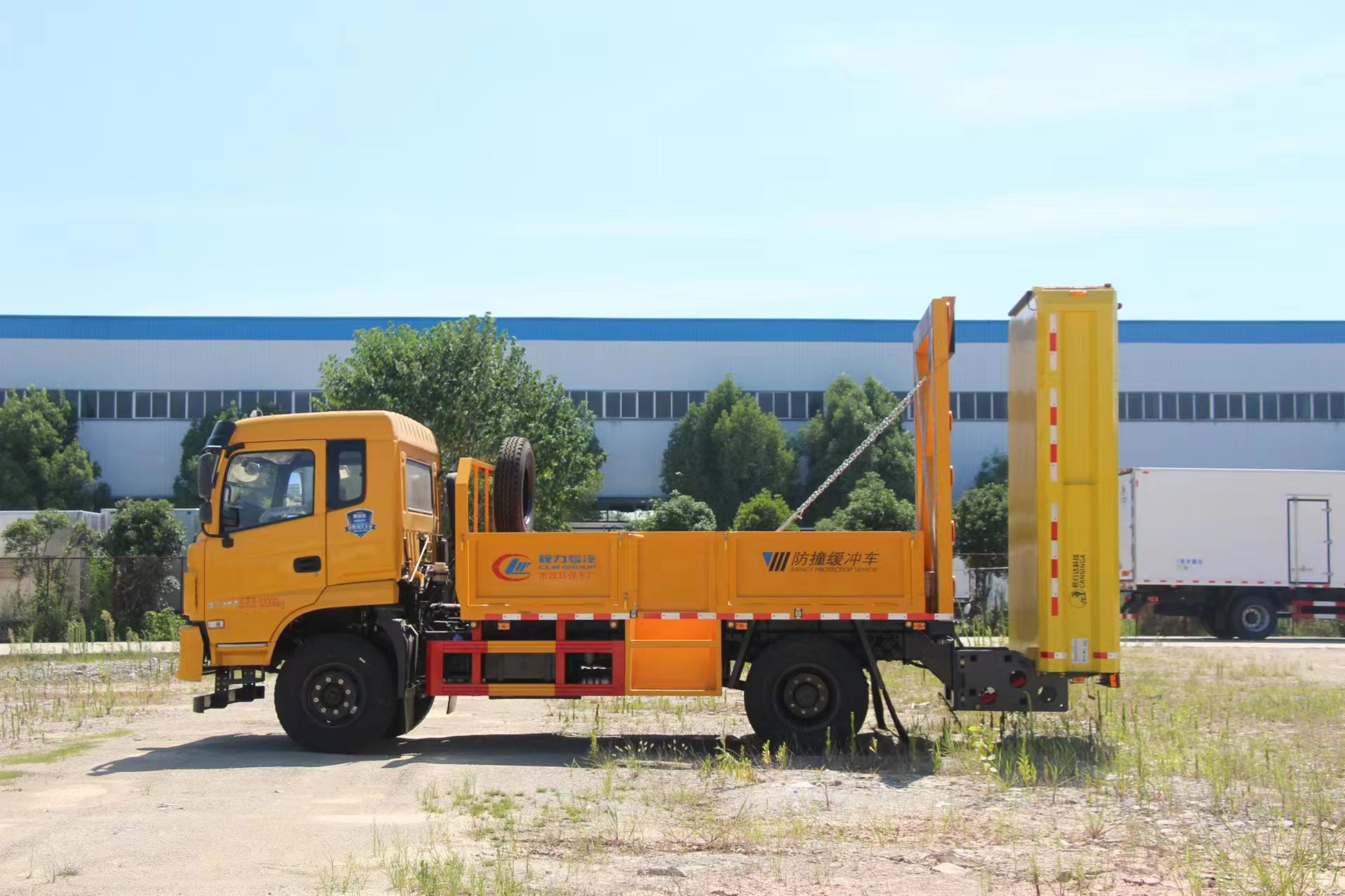 上裝配置 | 采用Q235國標(biāo)邊3mm底板花紋板4mm厚,箱體后部防撞緩沖模塊包采用國際知名技術(shù)產(chǎn)品100E防撞緩 沖模塊,防撞緩沖吸能模塊主要由車載防撞緩沖墊和導(dǎo)向標(biāo)志架組成,充當(dāng)施工作業(yè)車輛后方的緩沖衛(wèi)士。 如若發(fā)生追尾事故,能夠在肇事車輛和前方施工作業(yè)區(qū)域之間構(gòu)建一個(gè)緩沖區(qū)域,通過機(jī)具結(jié)構(gòu)變形吸收撞 擊的能量,最大限度地降低被保護(hù)人員及設(shè)備遭到碰撞的幾率。高性能液壓系統(tǒng),可實(shí)現(xiàn)快速舉升和落下操 作,方便設(shè)備運(yùn)輸轉(zhuǎn)場(chǎng),一鍵啟動(dòng)功能,舉升和落下防撞裝置,當(dāng)防撞裝置未完全落下到工作位置或舉升到 垂直運(yùn)輸位置時(shí),會(huì)有自動(dòng)警告音提示。 |