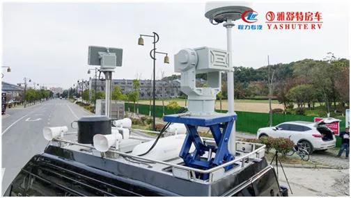 頂部:雷達(dá)偵測設(shè)備,電子干擾及無人機(jī)誘騙一體,無線電檢測設(shè)備,光電跟蹤設(shè)備