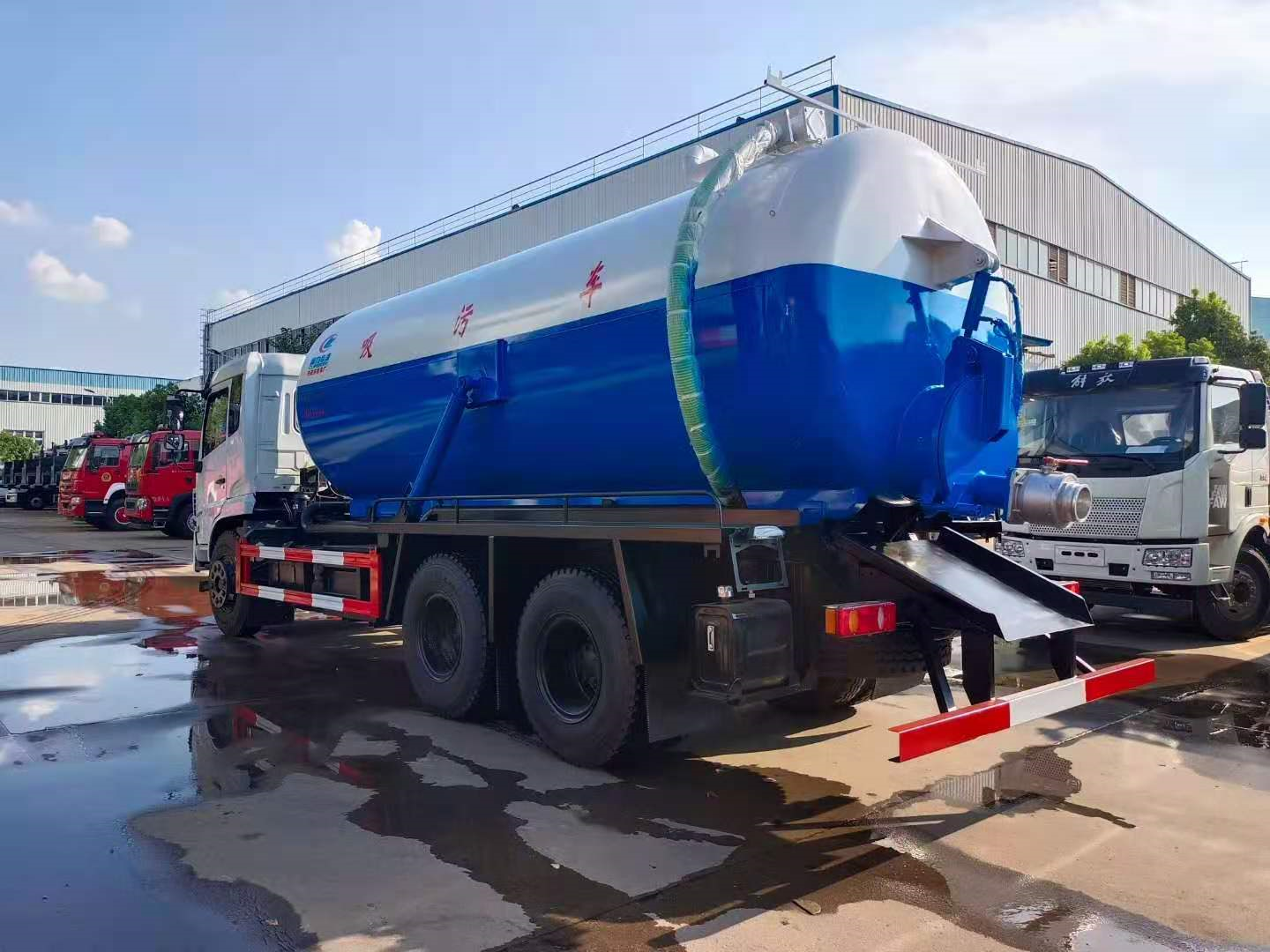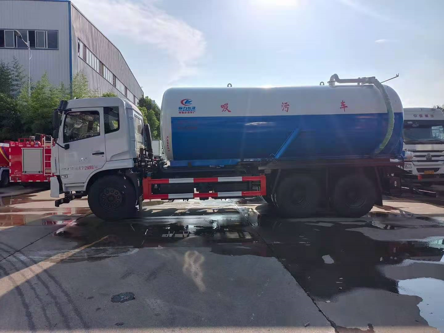 | 上裝配置 | 污罐:Q235武鋼6MM厚碳鋼板,標配采用億豐2BE-204水循環(huán)泵,防溢閥,視糞管,配一根8米吸污管,罐體封頭一次壓鑄成型、罐體帶舉升,后蓋為液壓開啟。罐內(nèi)污物可通過后蓋直接傾倒,具有真空度高、噸位大、效率高、用途更廣泛的特點。 | ||