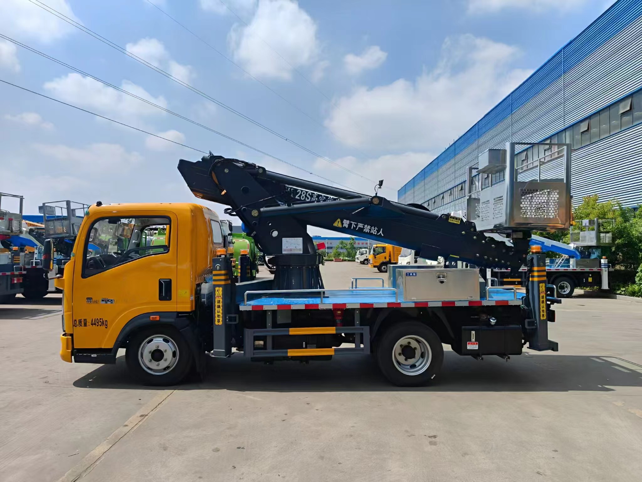 上裝配置 | 高空作業車基本功能安全配置: 最大作業高度23米,28米,31米 工作平臺: 高強度不銹鋼尺寸:1600*700*1000mm;360度連續回轉,電控操作,另配有手動應急操作; 控制系統:CAN總線控制系統,配有無線遙控器、實現無級調速, 調平系統:靜液自動調平 臂架形式:★多邊形型工作臂,同步伸縮 支腿:★前V后H型/前V后V單獨可調(控制) |